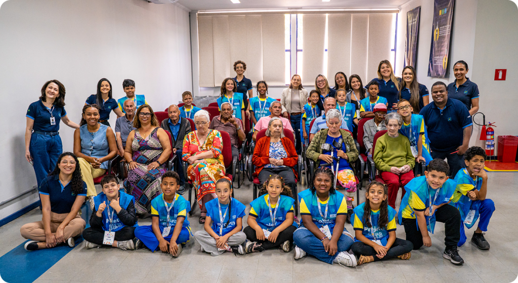 Realizado anualmente, de maio a novembro, o projeto promove encontros mensais entre alunos de escola pública e idosos atendidos por instituição de acolhimento, criando uma experiência intergeracional baseada no respeito, na empatia e na valorização da história.